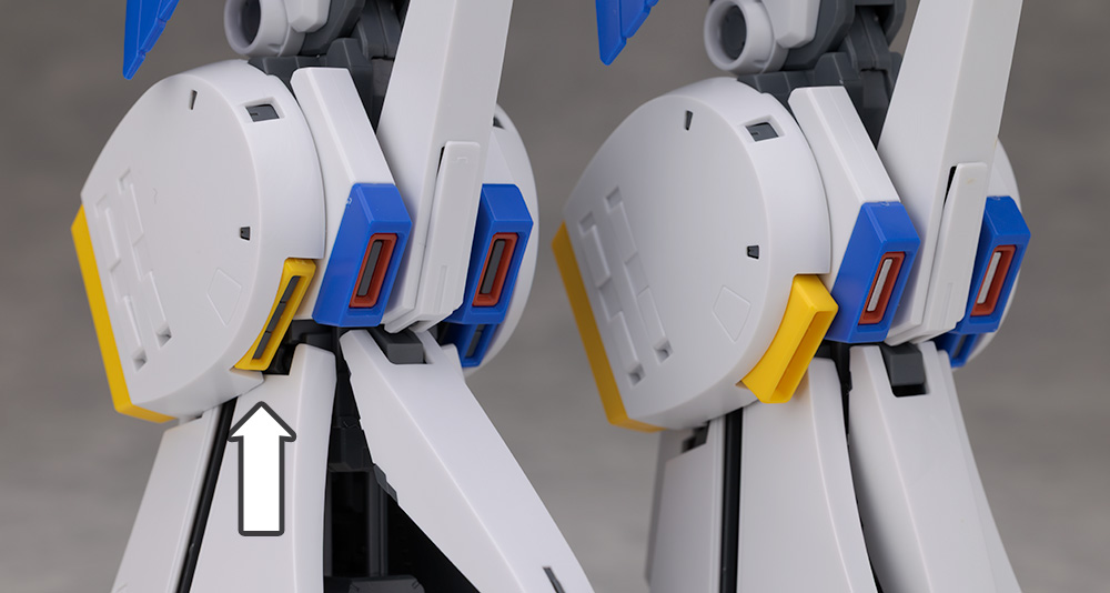 脚部ですがこちらも若干変更点があり、増加装甲を被せる関係で黄色いダクトが奥まった形状に変わりました。