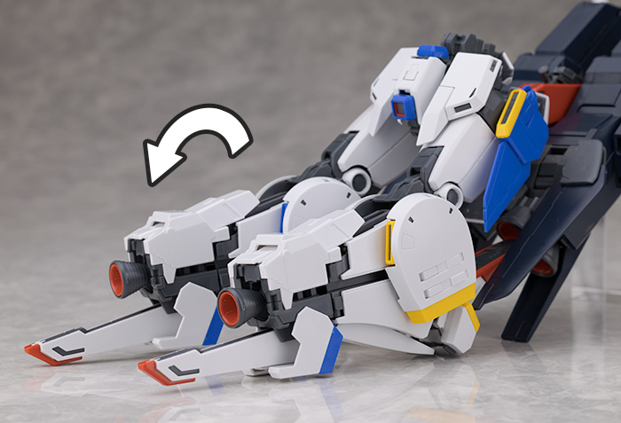 脛部分を引き出しそのままぐるっと回転させバーニアを展開。