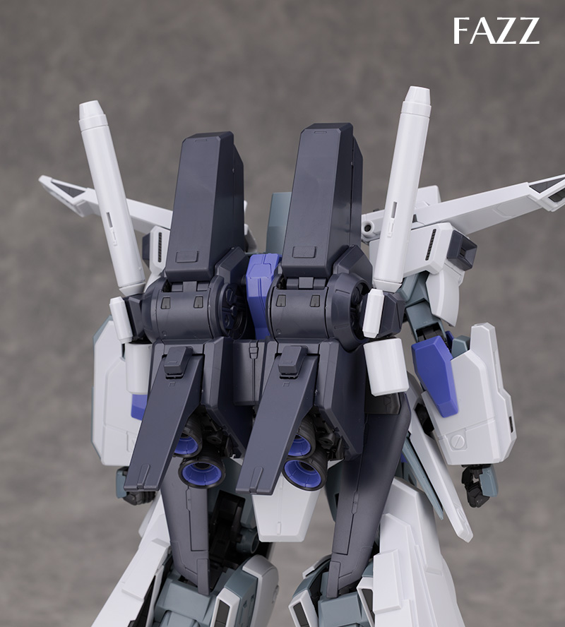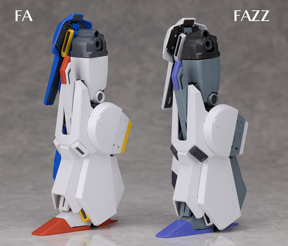 配色再現のため脚のスラスターダクトなどに新規パーツが使われていますがデザイン自体はFAZZと共通です。