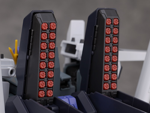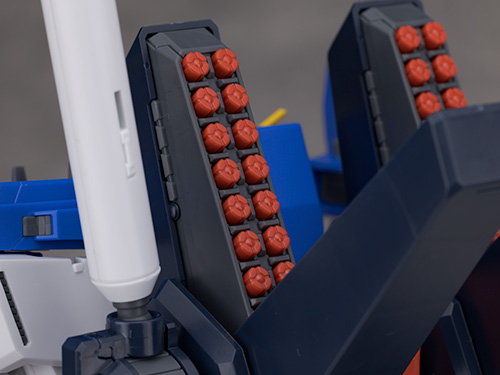 背面には大型化された「18連装2段階ミサイル・ランチャー」が装備されハッチは差し替え無しで開閉可能。