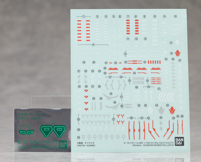 シール類はツインアイや膝のクリアパーツ部分に貼るホイルシールとマーキングシールが付属。