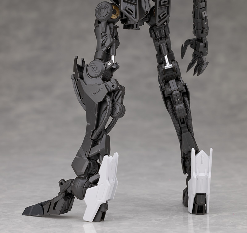 脹脛の装甲は膝を曲げると連動してスライド。そのため深く曲げる事が出来ます。