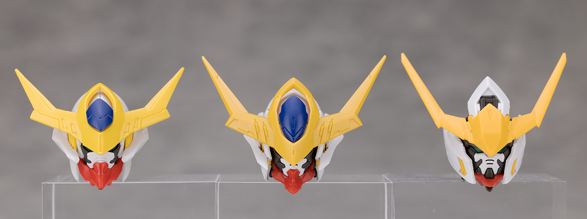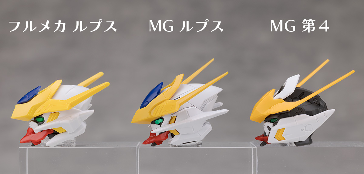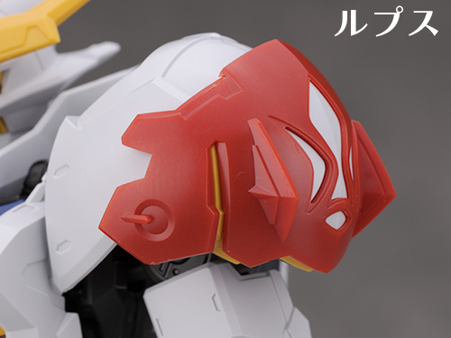 頭部アップ。昔発売された1/100フルメカニクスのルプスやMG バルバトス第4形態と比較しています。