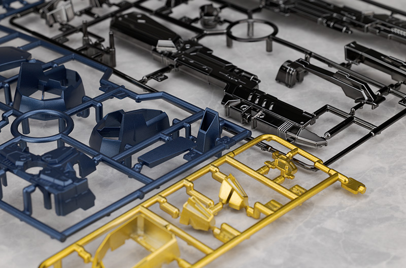 本体の多くのパーツは様々なコーティングやメッキ仕上げになっている他、赤いパーツやフレームパーツはメタリックの成型色に変更。
