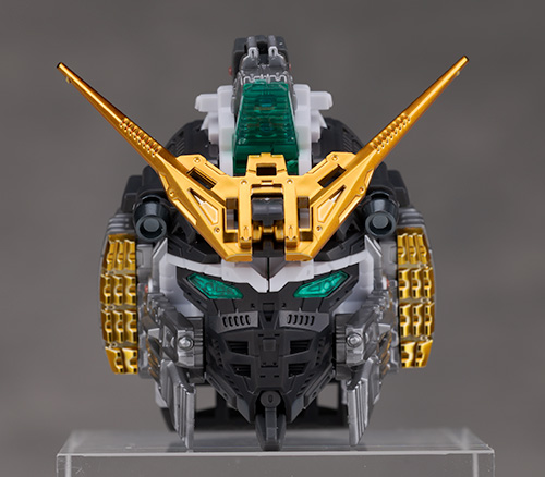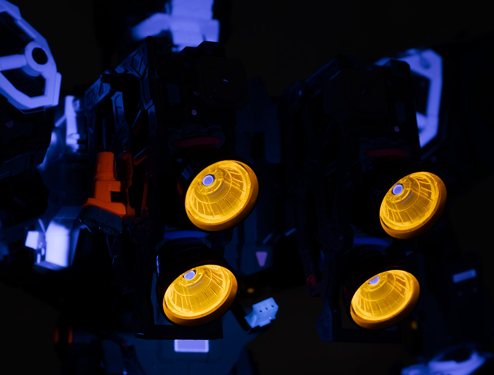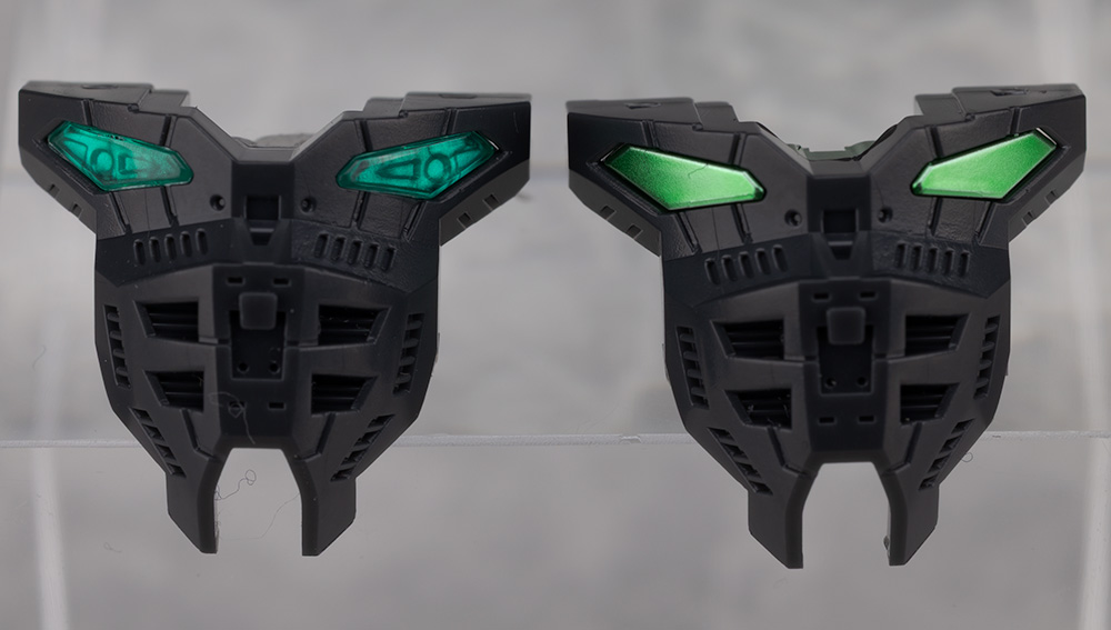 ツインアイ部分はそちらと比べると首から光を伝える構造なのでやや控えめ。