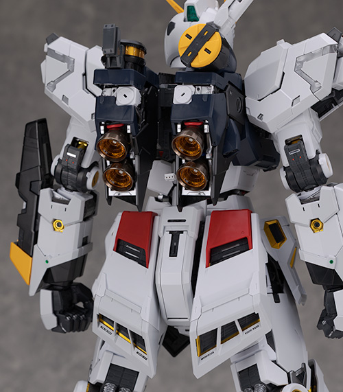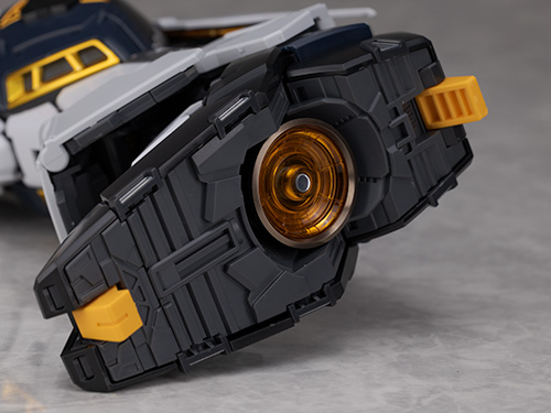 背面のバーニアは金属パーツにクリアオレンジの内部パーツを組み込み、中央にプラスチックシールを貼る方式。