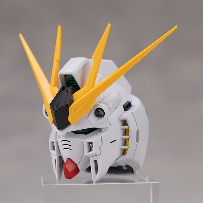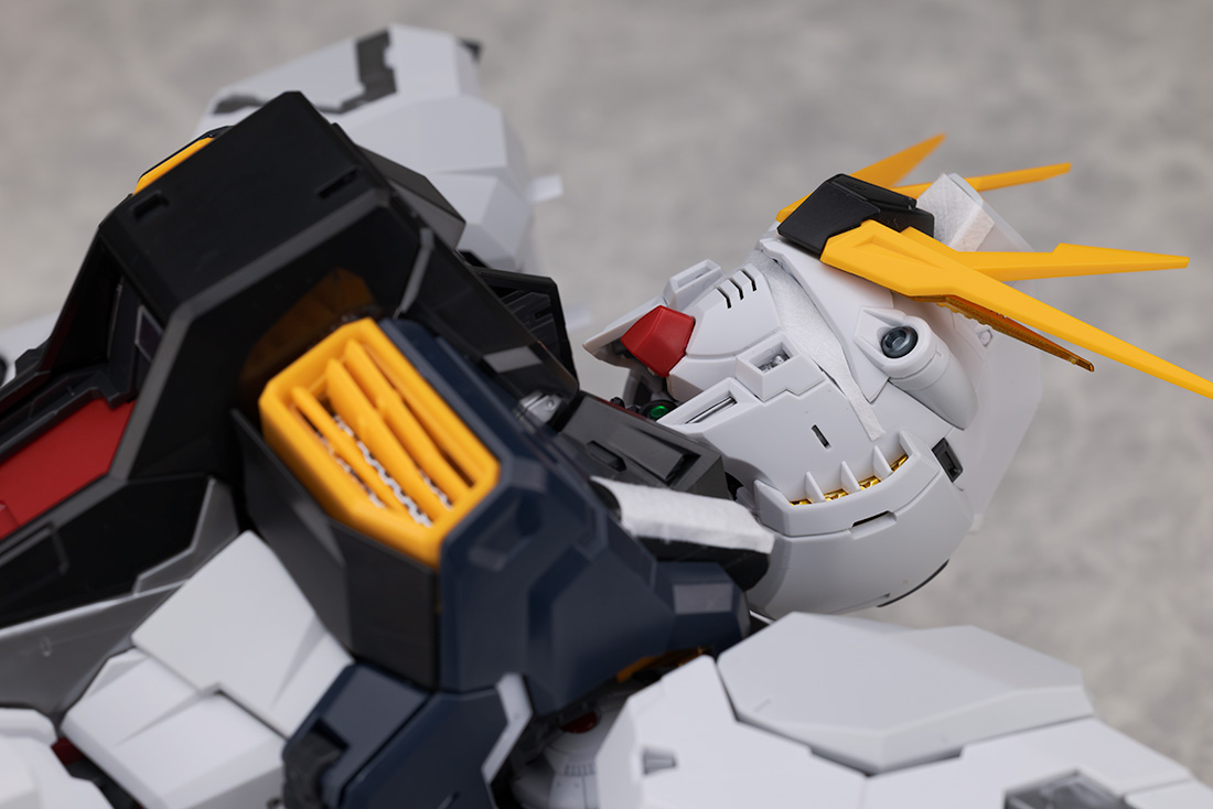 頭部はアンテナを起こし、トサカ部分や頬ダクト周りの装甲を展開可能。