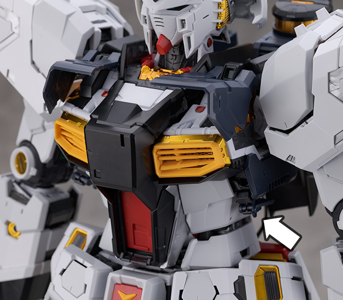 胸部は両胸のカバーと矢印部分にある小さい装甲を展開可能です。