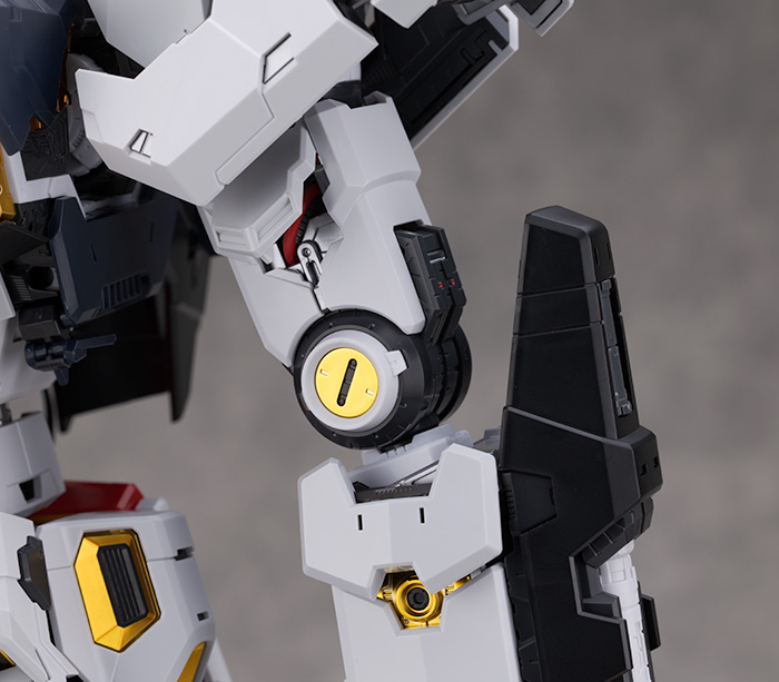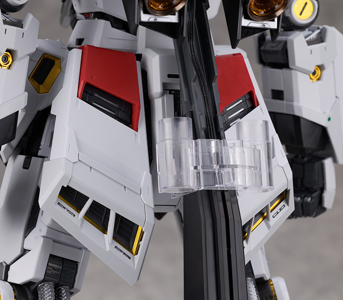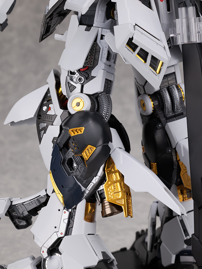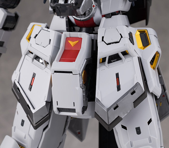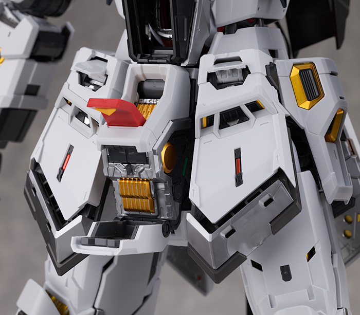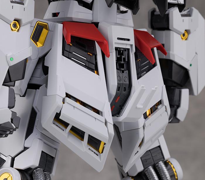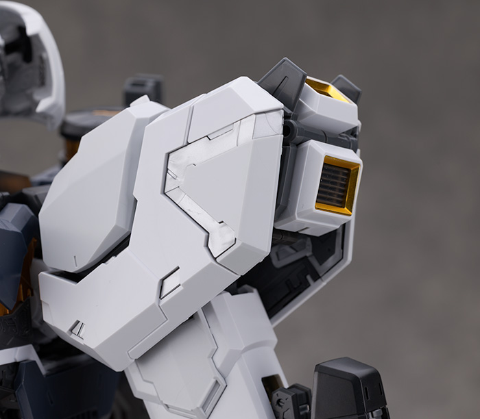 肩アーマーはライトグレーの装甲が展開しスラスター部分も引き伸ばすように可動。