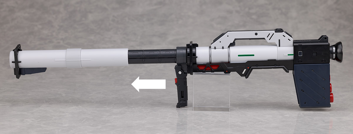 Eパックのようなパーツが外せる他、砲身の一部がスライドします。
