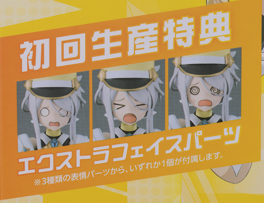 今回初回生産特典としてオプションフェイスが1つ貰えるのですが、3種類の中からランダムとなり特定の表情を選ぶ事はできません。