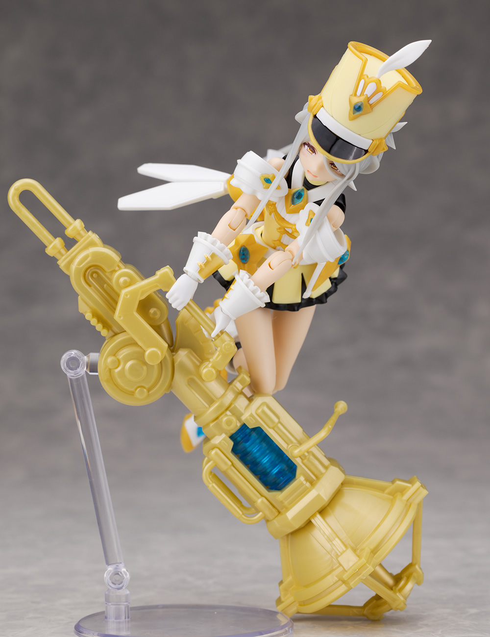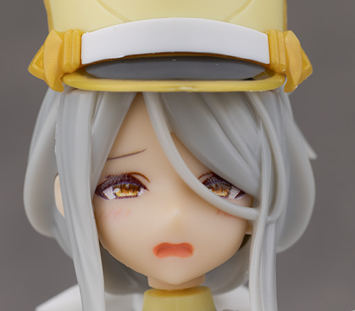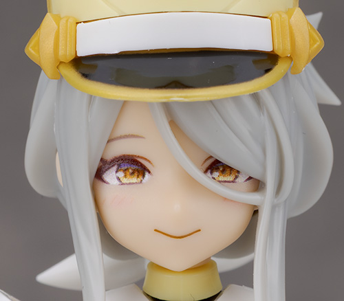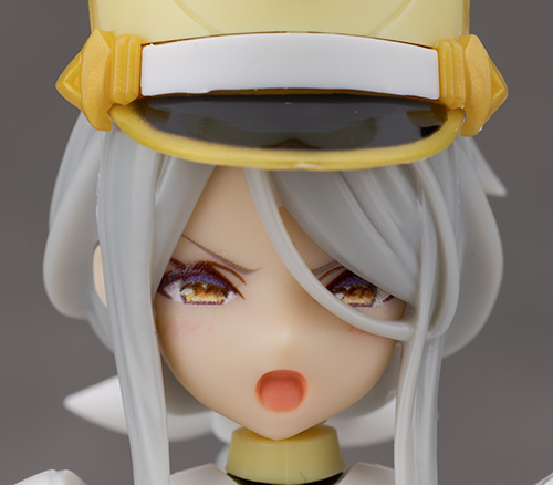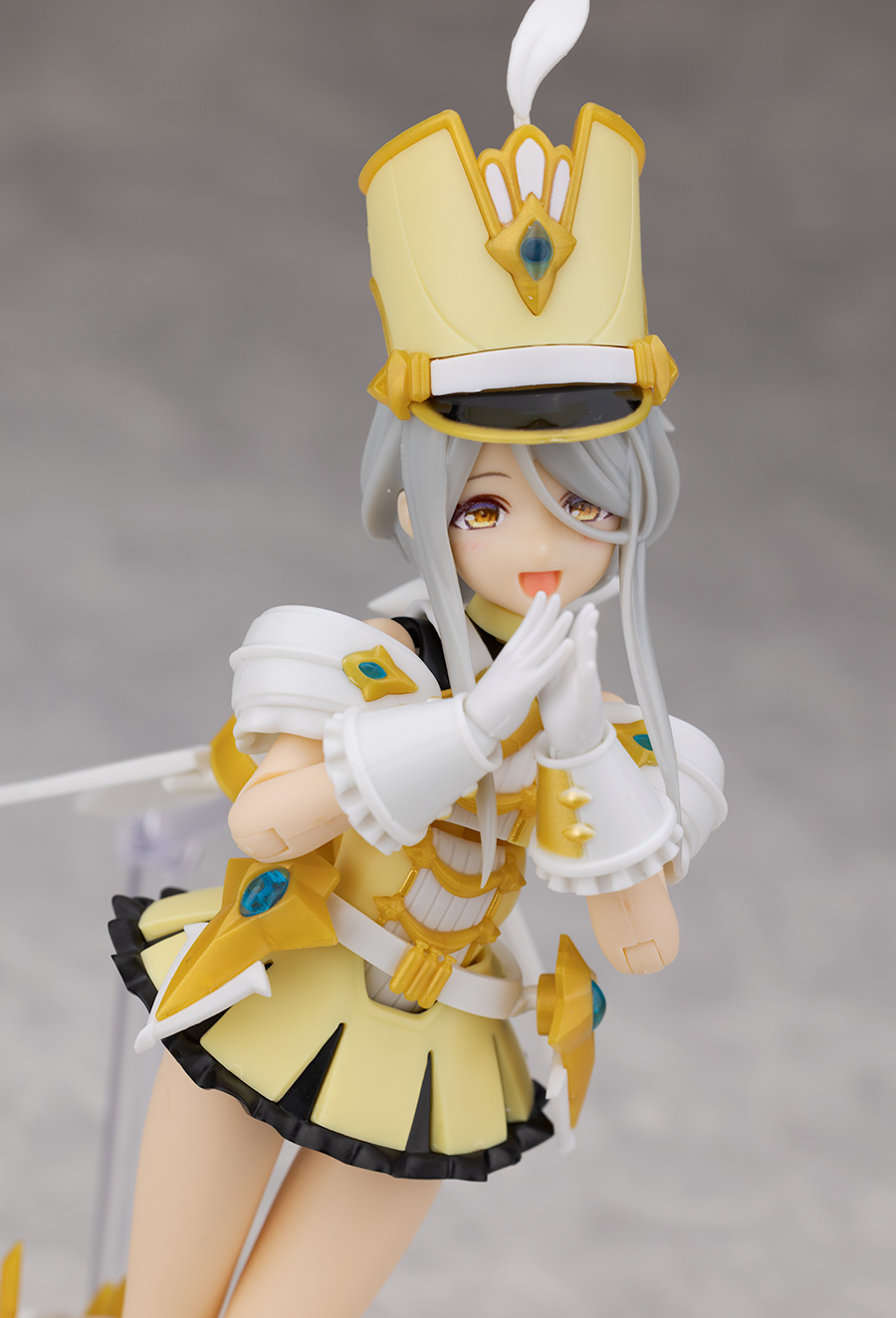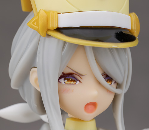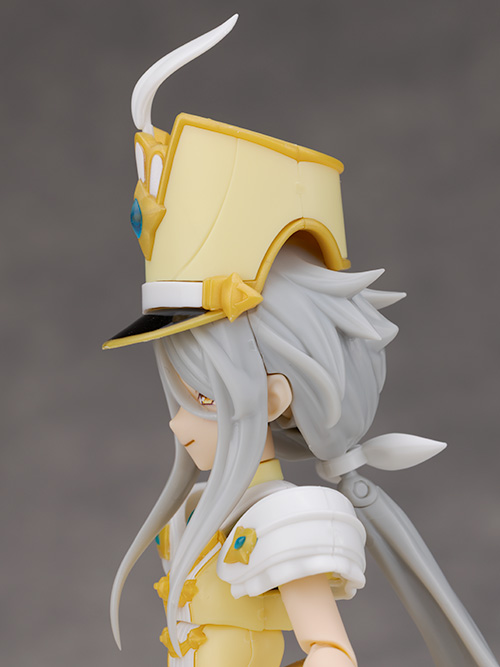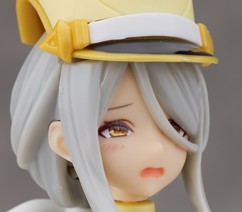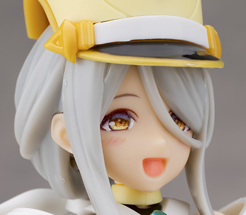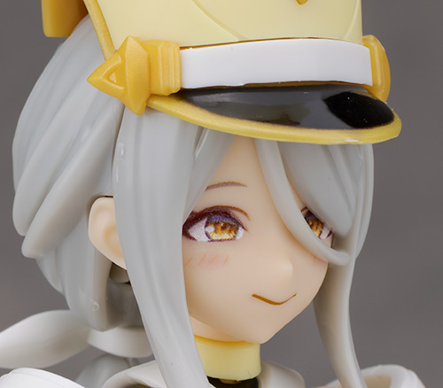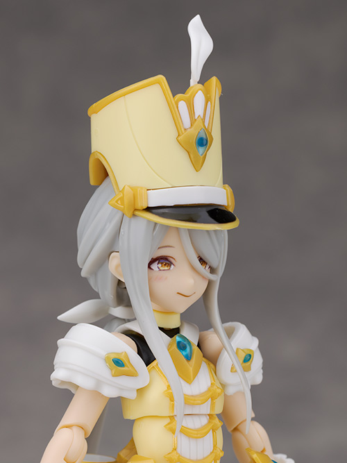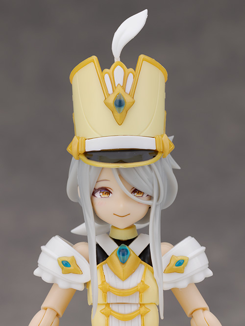 頭部アップ。頭部は高さのあるマーチングバンド風の帽子を被った姿で