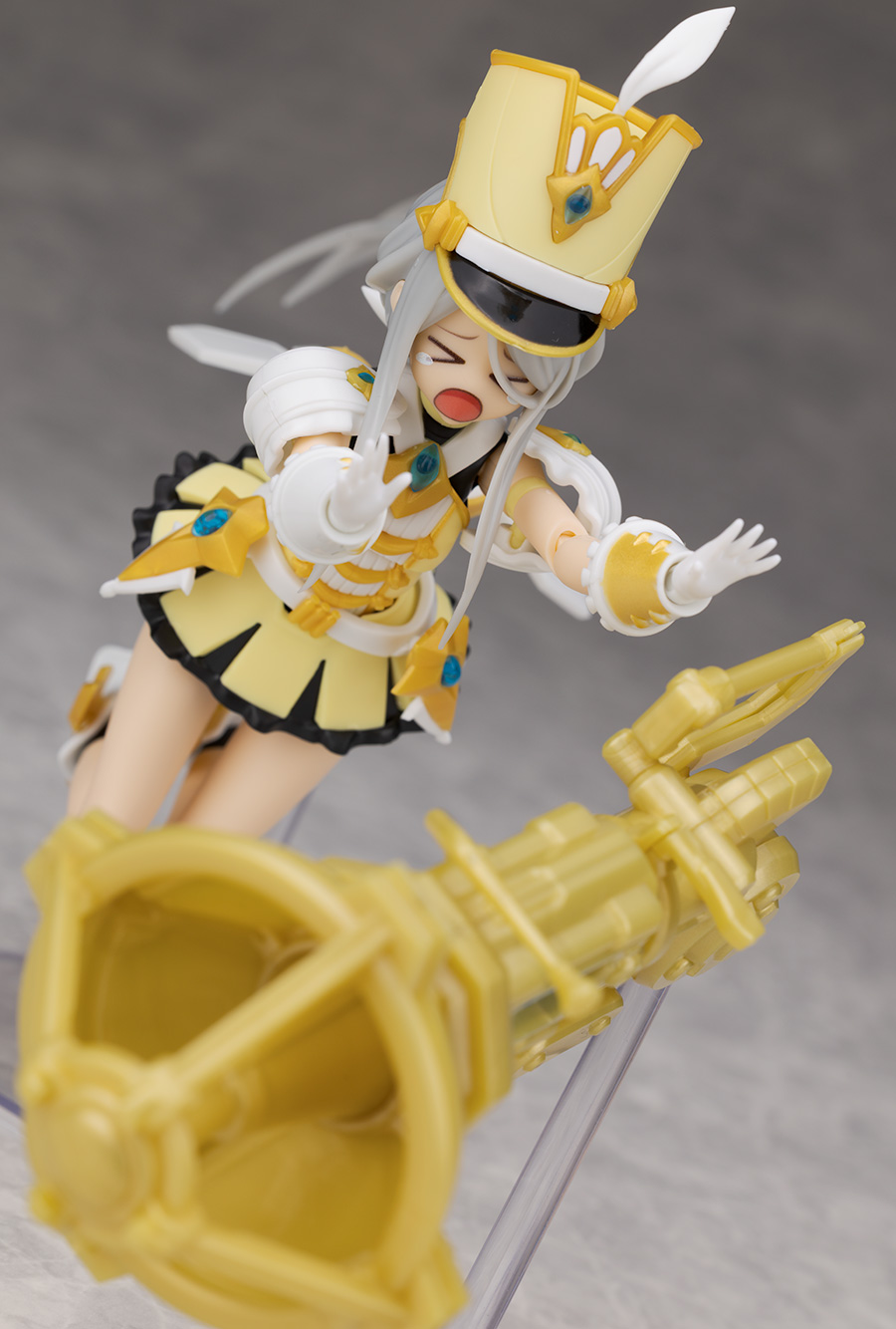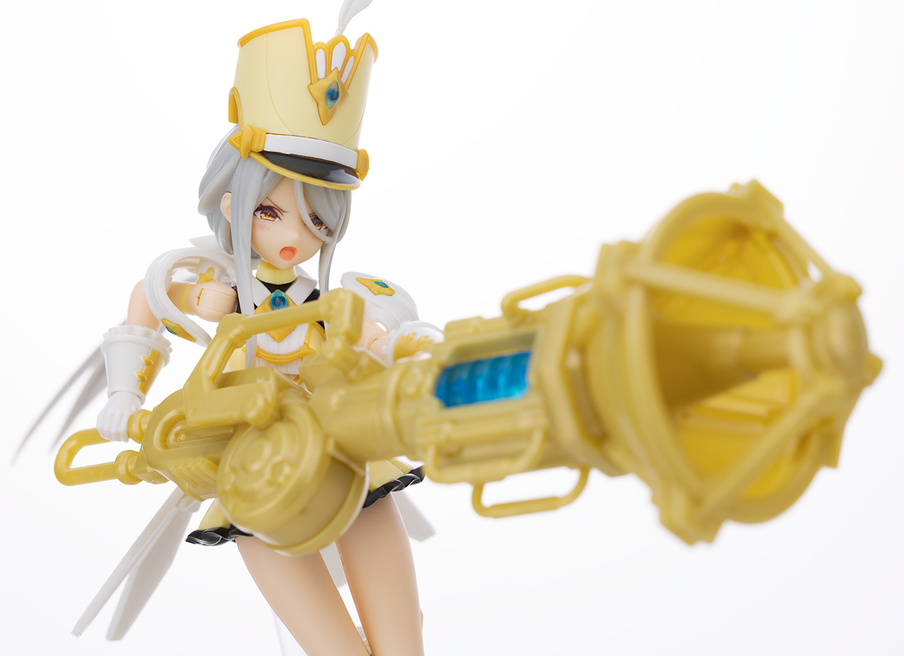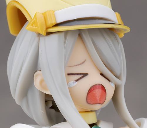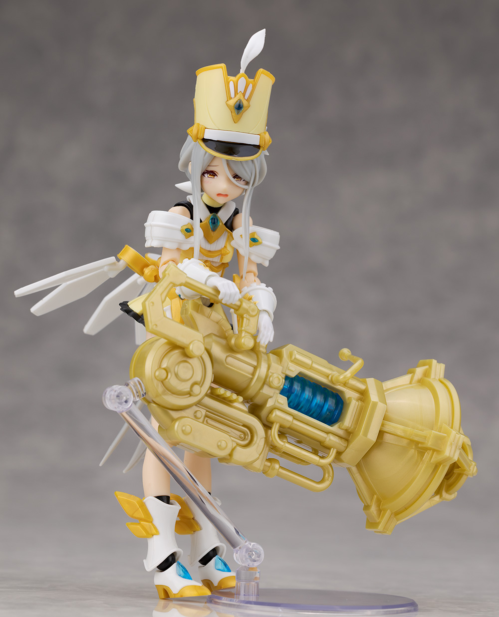 頭部アップ。頭部は高さのあるマーチングバンド風の帽子を被った姿で