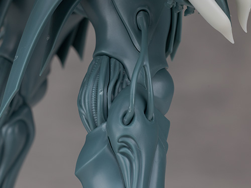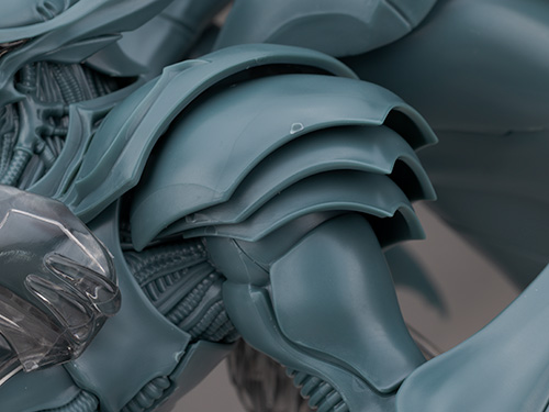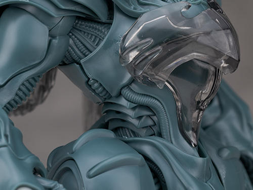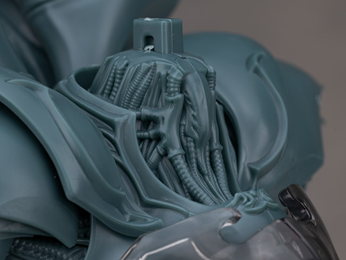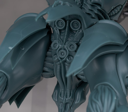 首は非常に情報量が多い造形で細かいケーブルや筋繊維のようなディテールがびっしり刻まれています。