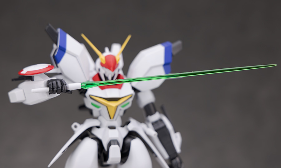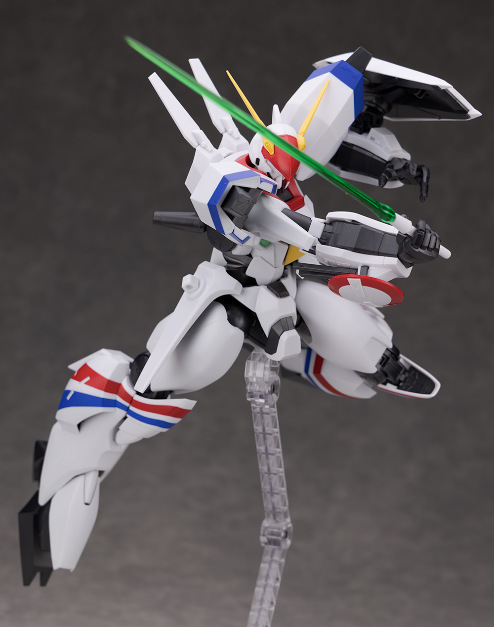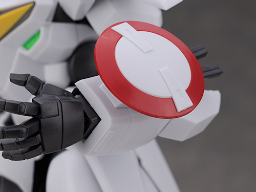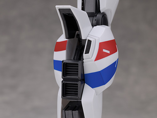 機体の色分けですが、肩や脚部の特徴的なラインは塗装済みパーツで再現されています。