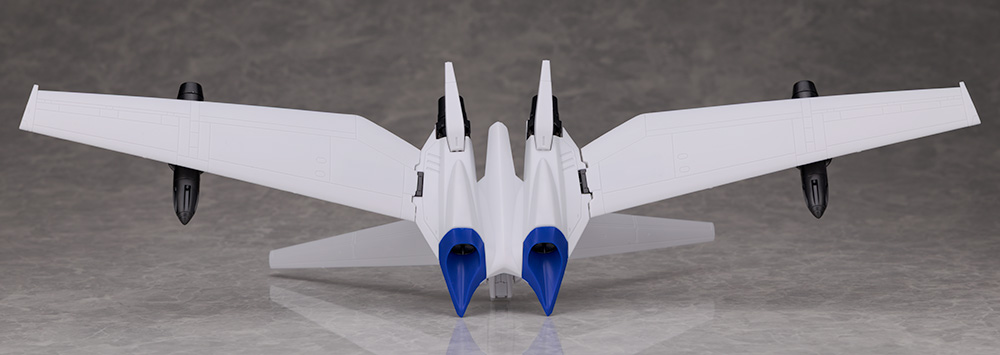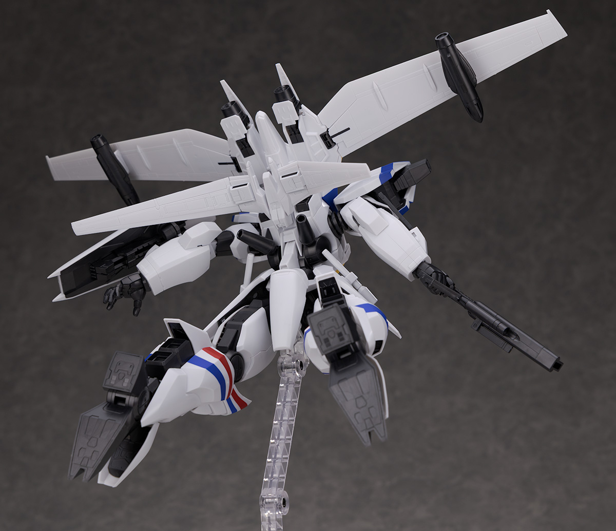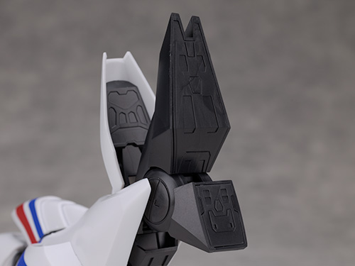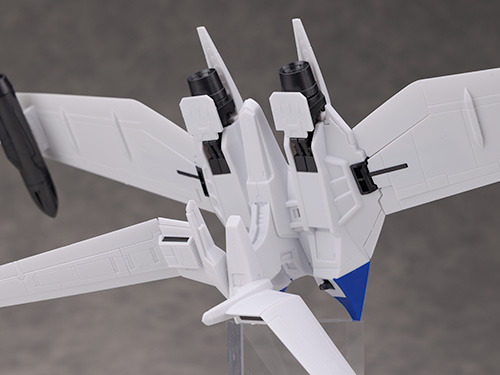 胴体のアップ。胴体はメリハリのある造形でスラスターやカバーなども長く伸びています。