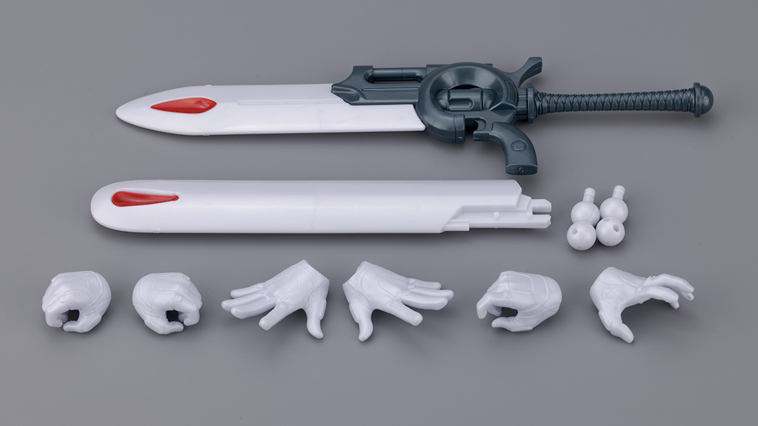 付属品はチェンガン、ソードモード用パーツ、スペア手首ジョイント、