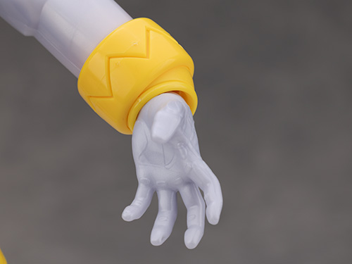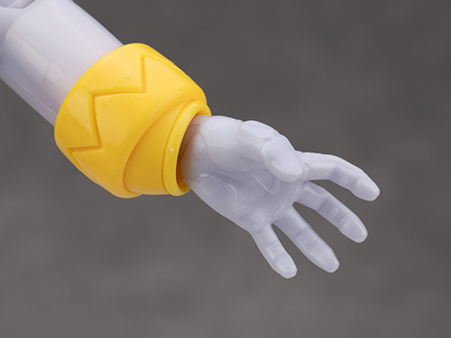 腕部は前腕が長めのデザインで黄色い腕輪部分なども別パーツで再現。