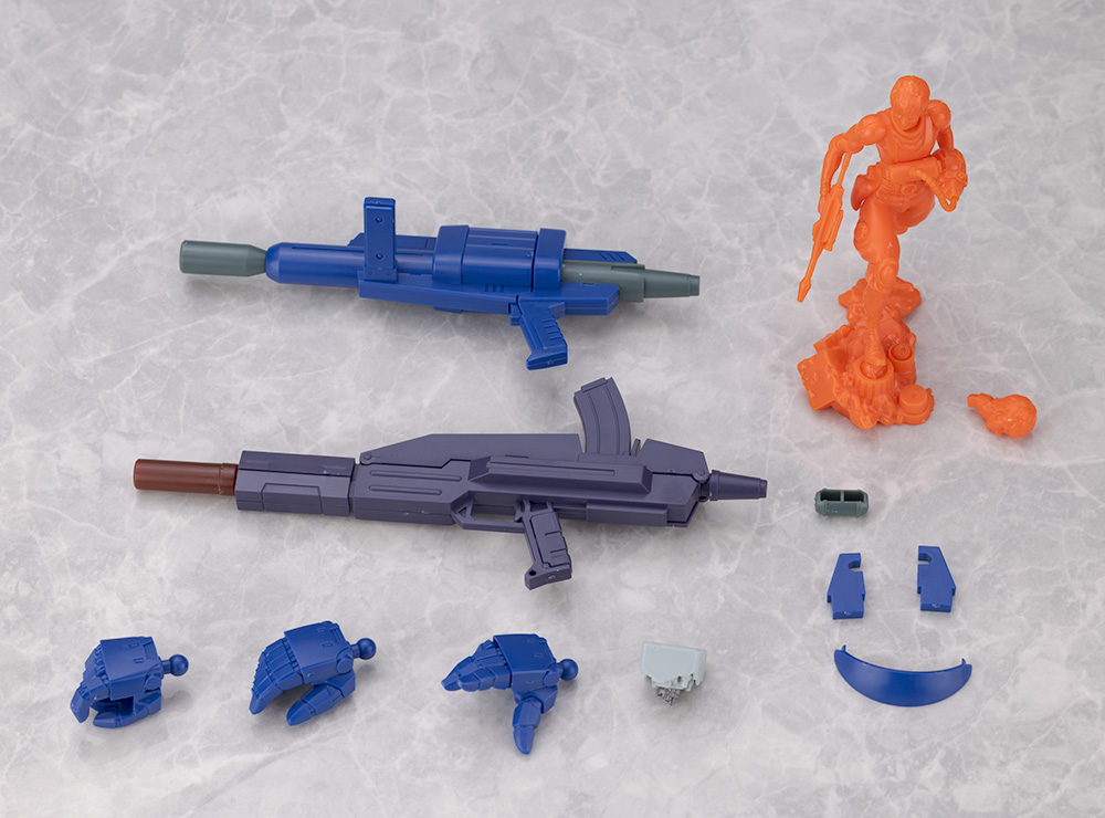 付属品はハンディソリッドシューター、DTアサルトライフル、右銃持ち手、右平手2種、破損左腕パーツ。