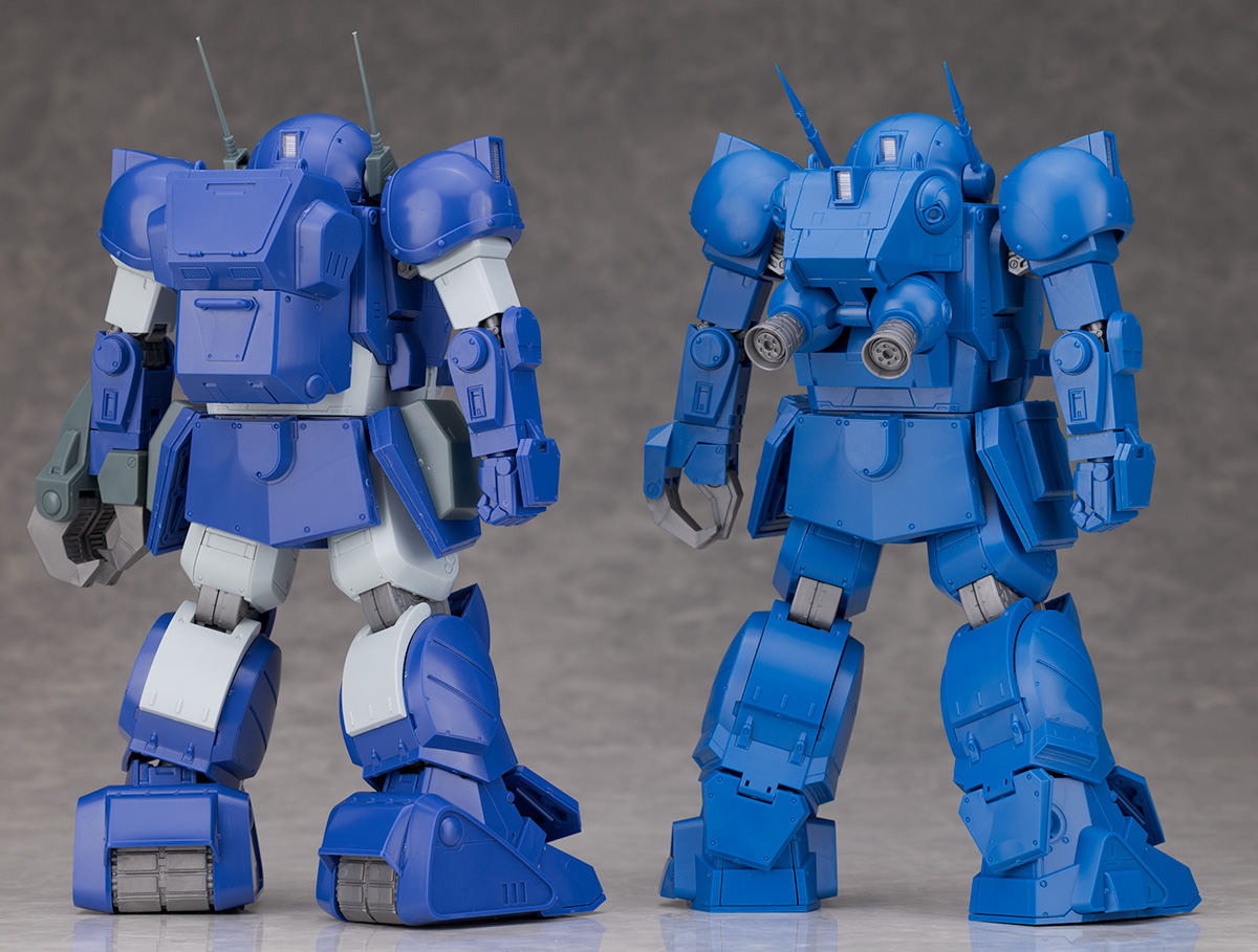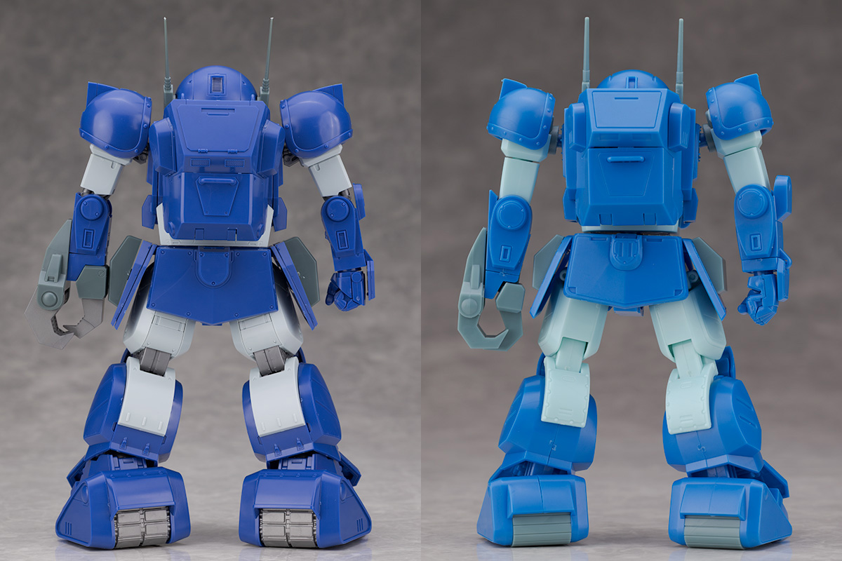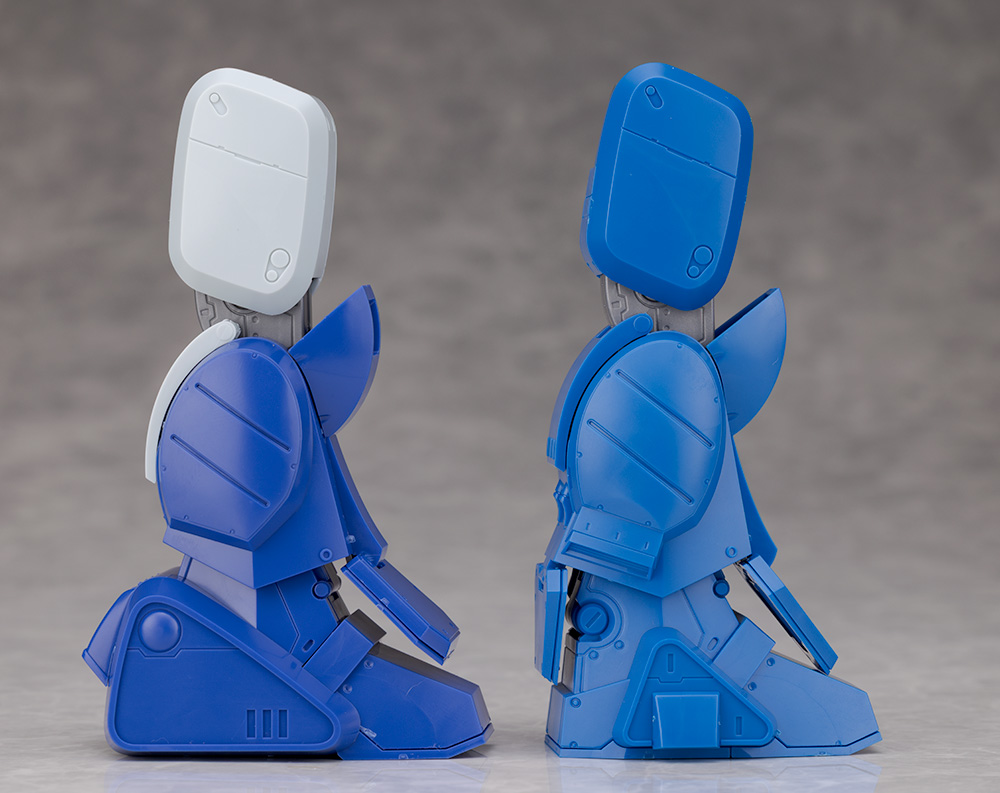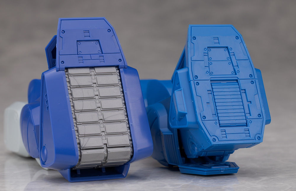 脚部は大腿部や膝関節が共通なものの、膝下の装甲デザインや足首の形状が異なります。
