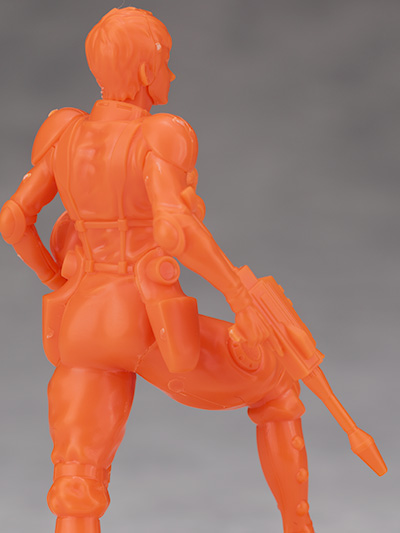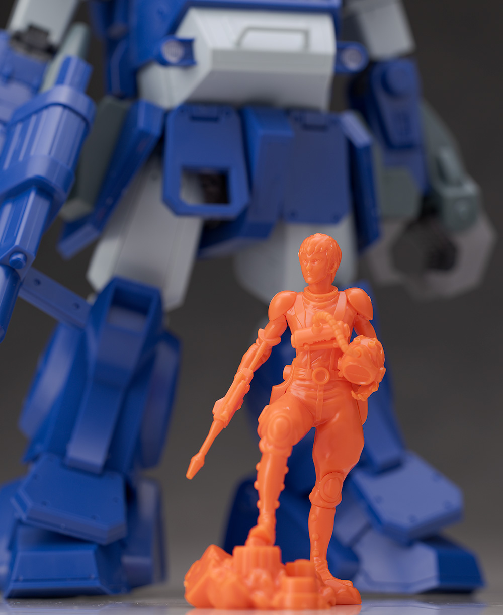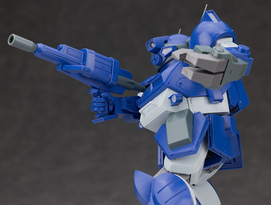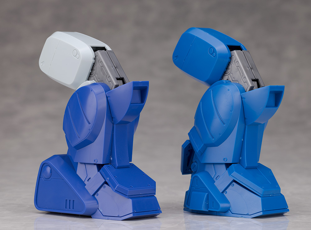 脚部は大腿部や膝関節が共通なものの、膝下の装甲デザインや足首の形状が異なります。