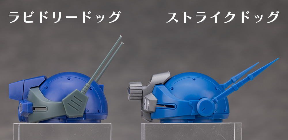頭部アップ。ベースとなっているストライクドッグと並べて比較しています。