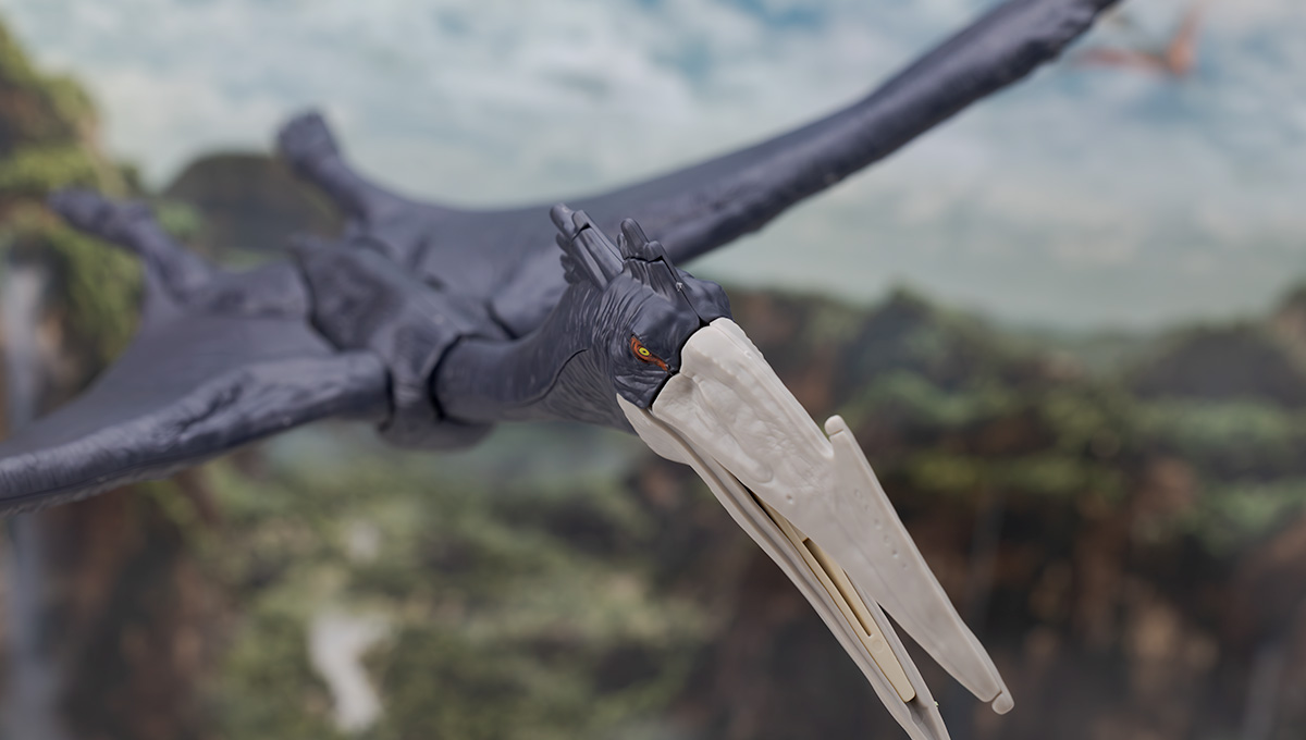 骨格時点でもそうでしたが巨大なクチバシが印象的な翼竜で翼などはプテラノドンよりシャープな形状。