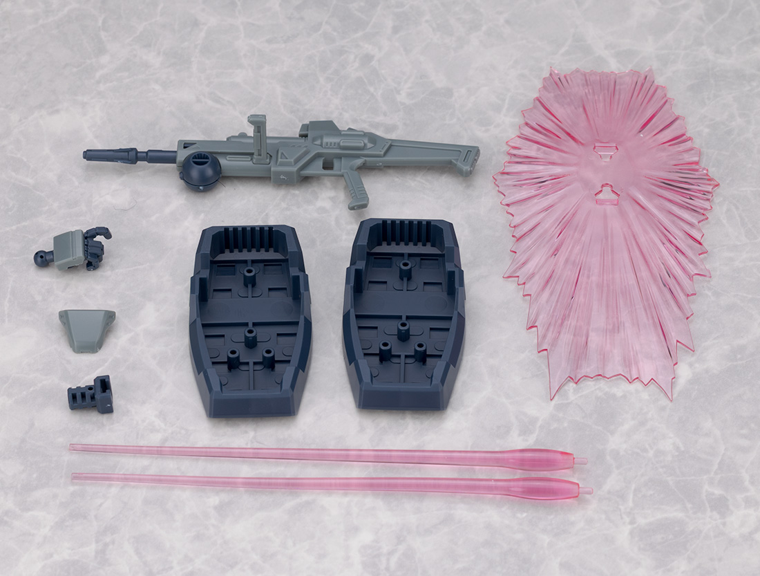 付属品はビーム・ライフル、右銃持ち手、交換用コックピットハッチ、スタンドジョイント、パレード用足首カバー、