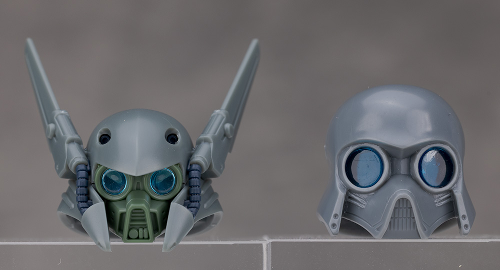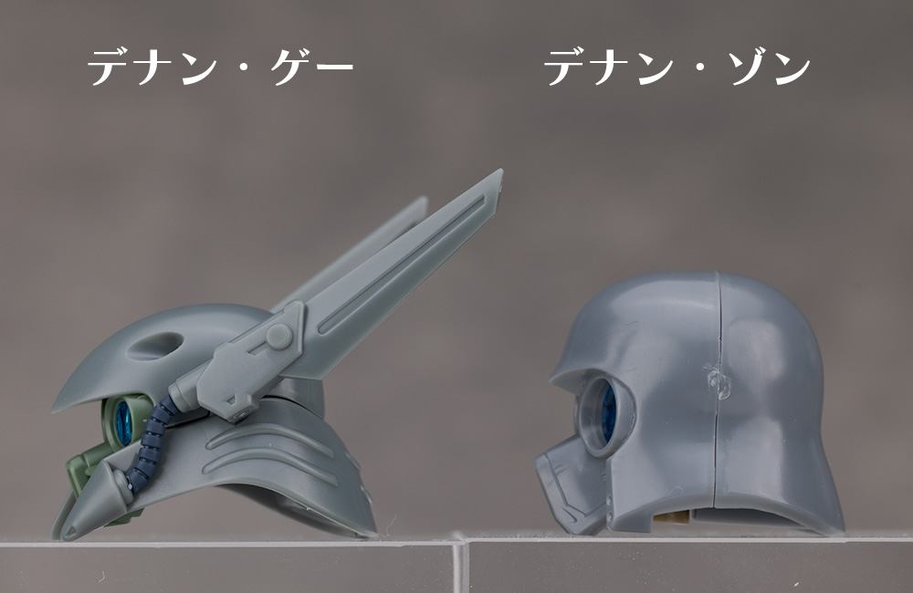 頭部アップ。頭部は1/100デナン・ゾンと並べて比べています。