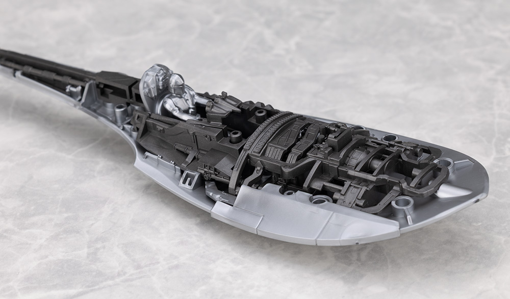 内部メカもしっかり造形されているため、隙間も単調になる事なく密度のあるメカ造形が見えるようになっていますしシャープなディテールは健在。