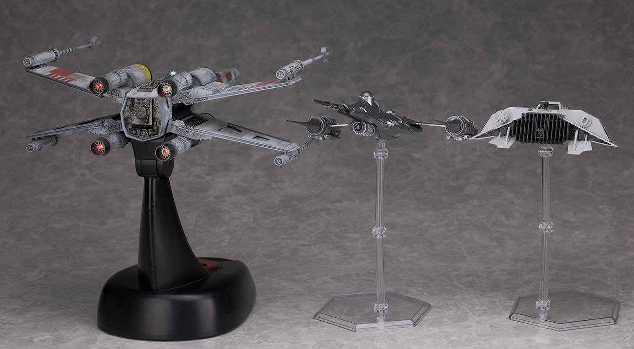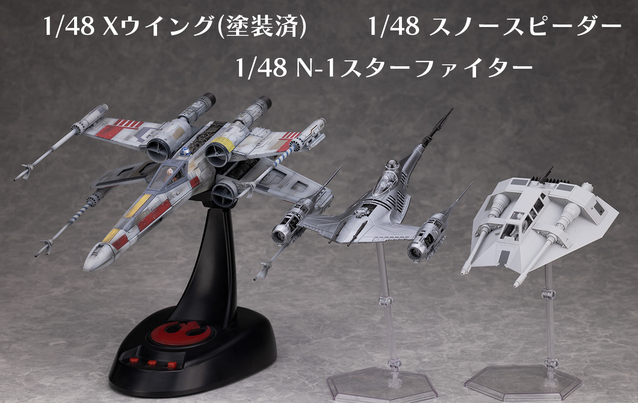 同じスケールの1/48 Xウイング・スターファイター ムービングエディションや1/48 スノースピーダーと並べてサイズ比較。