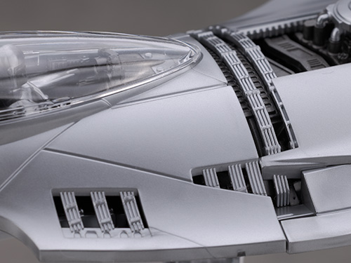 ほぼシルバー単色かつ流線型で綺麗な通常のN-1スターファイターと異なり、各所の隙間やスリットから見える内部パーツがスパルタンな印象で格好良いです。