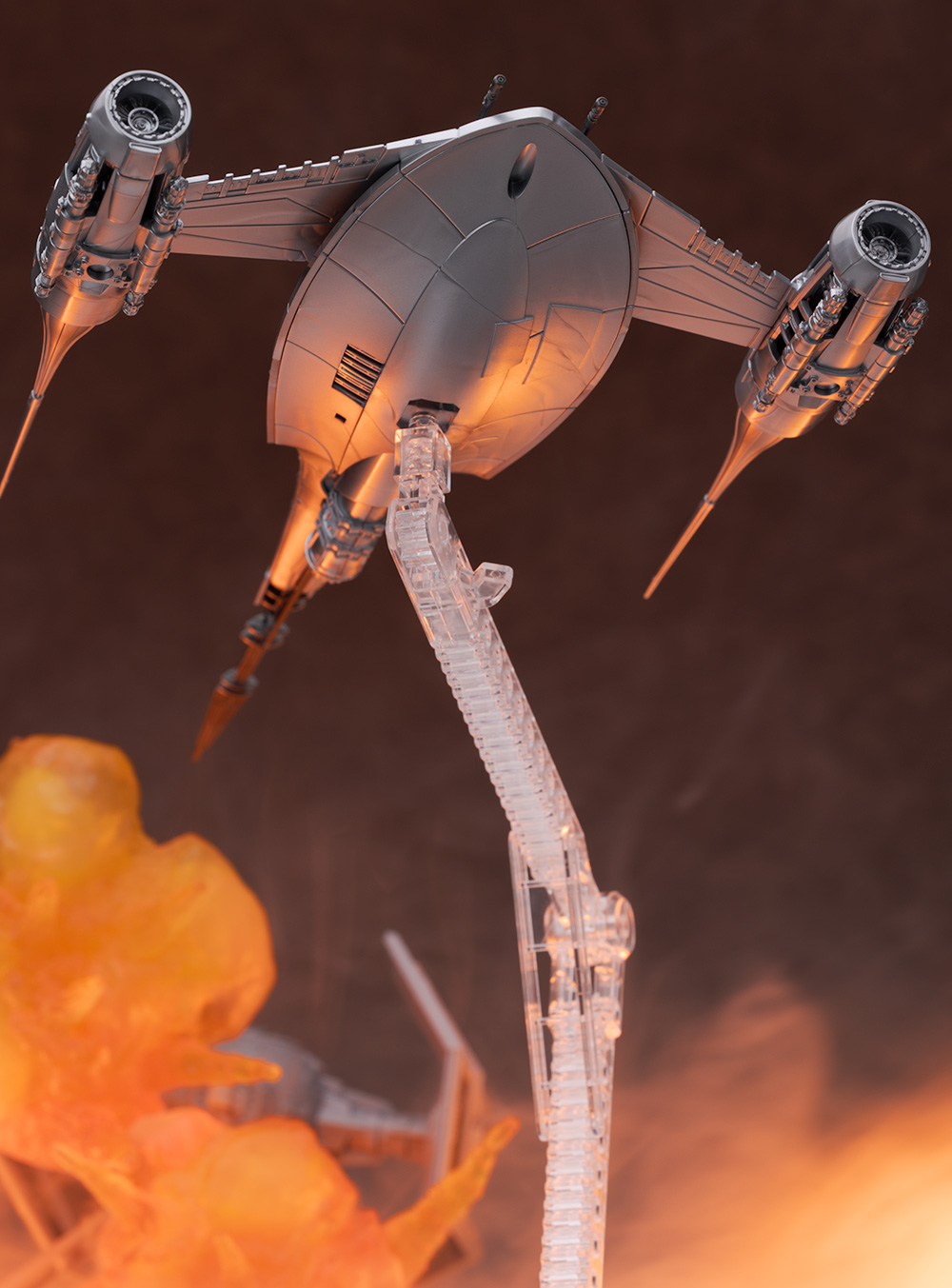 ナブーで使われていたN-1スターファイターの面影はあるのですが、装甲などは継ぎ接ぎで至る所に隙間や穴があるためメカが露出しているのが大きな特徴となります。